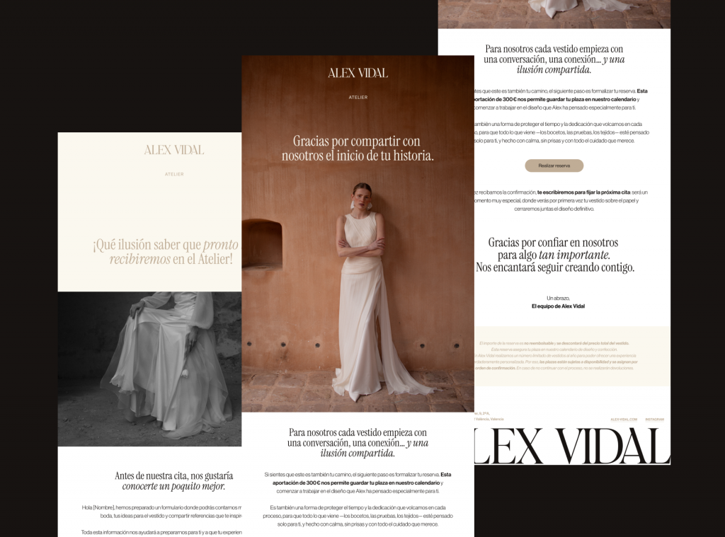 Alex Vidal Atelier necesitaba una identidad digital que transmitiera cercanía, exclusividad y confianza en el sector nupcial.